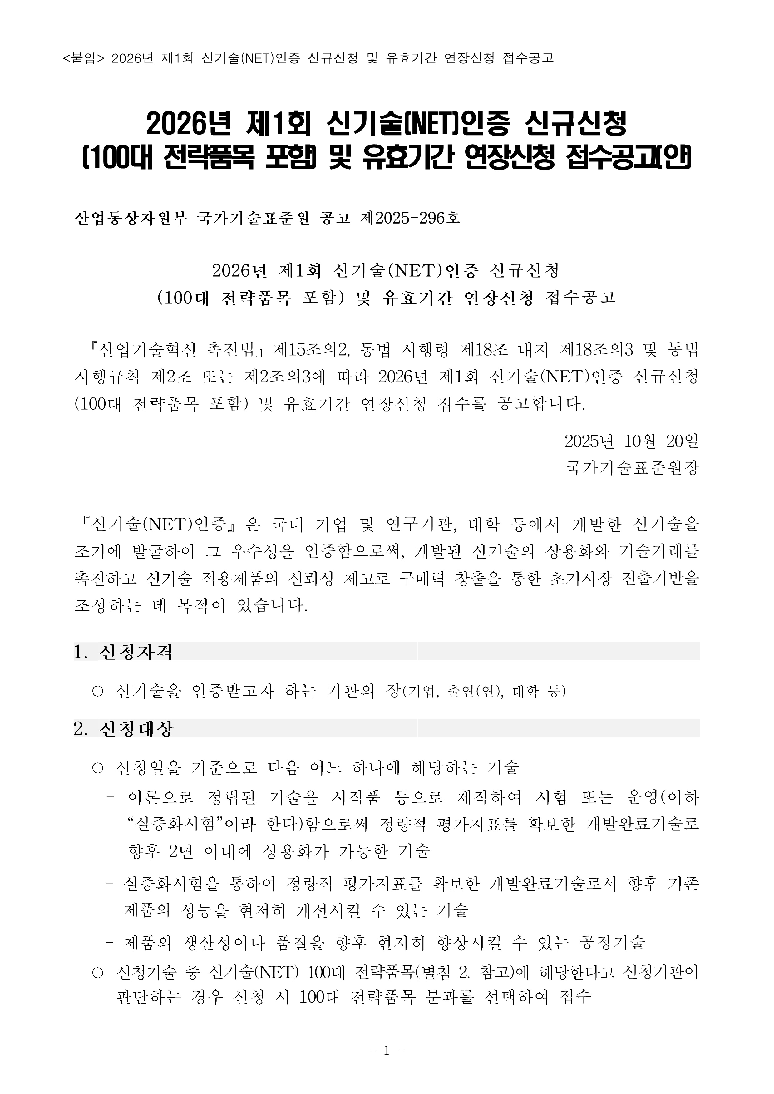 [한국산업기술진흥협회] 2026년 제1회 신기술(NET)인증 신청안내