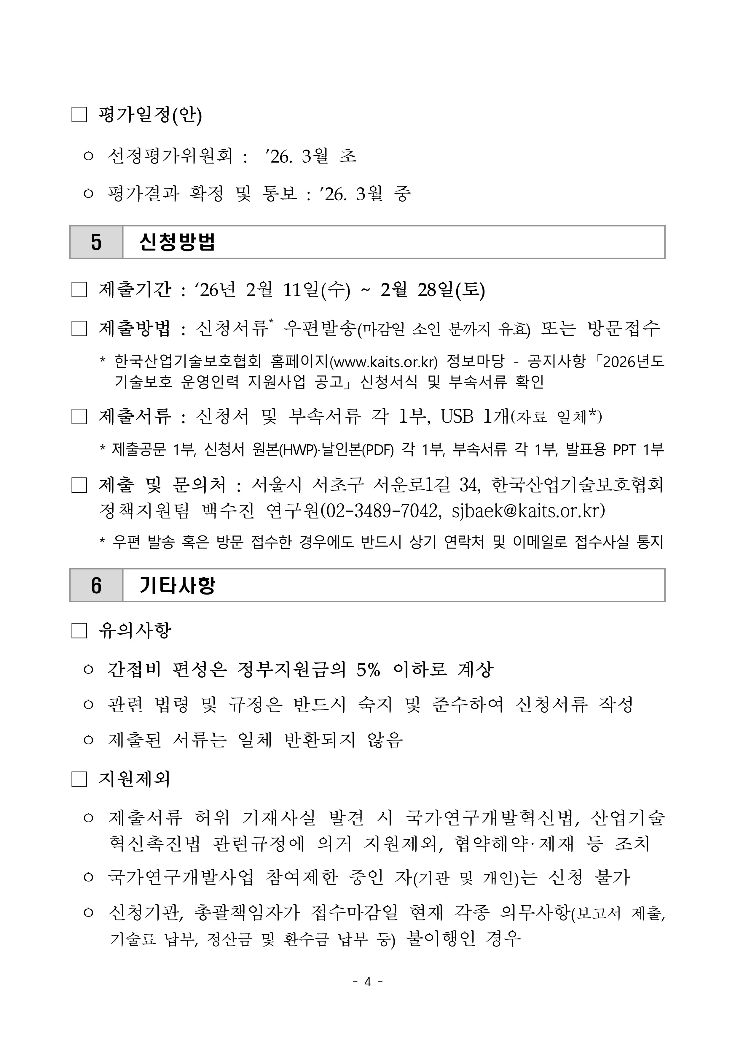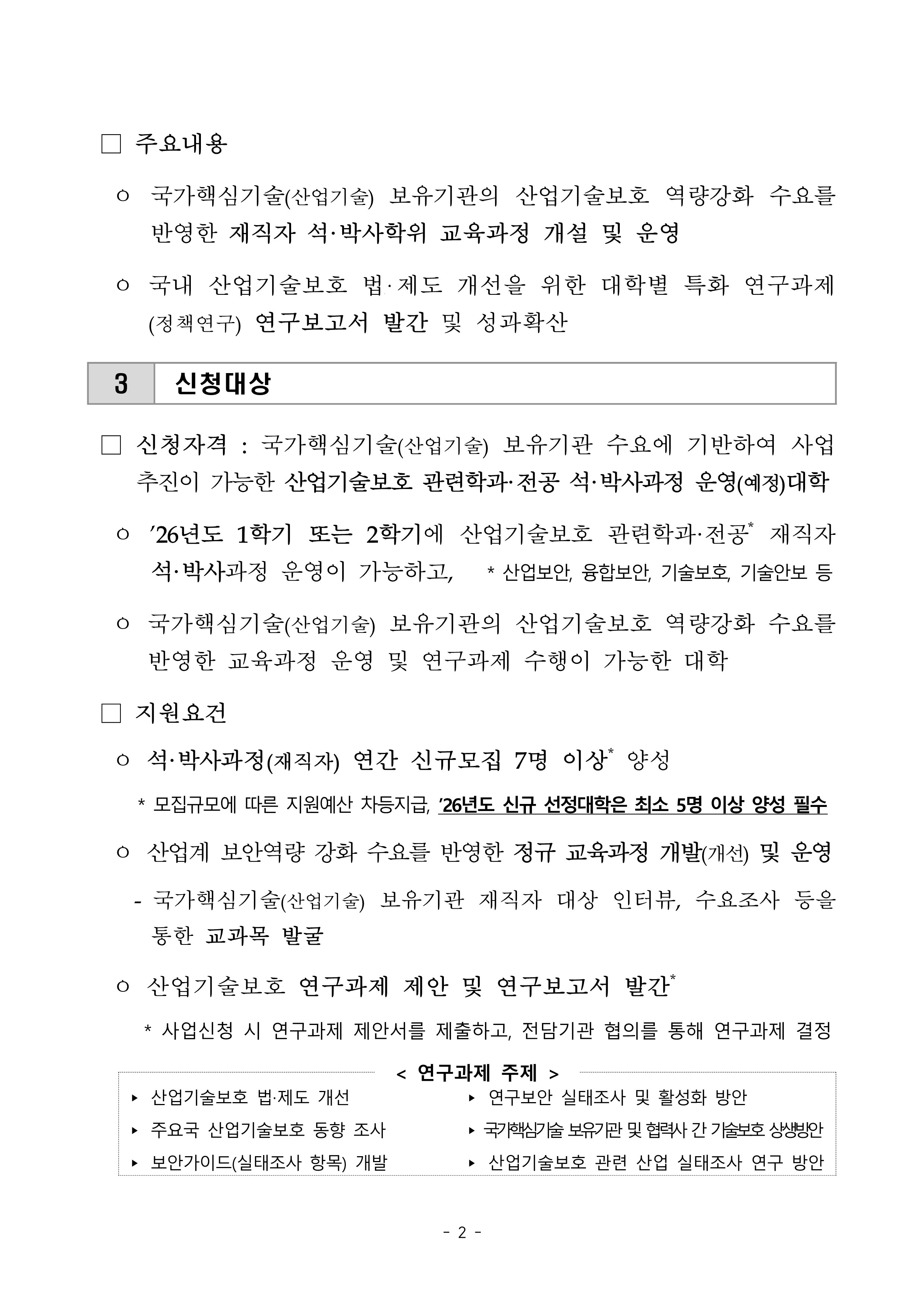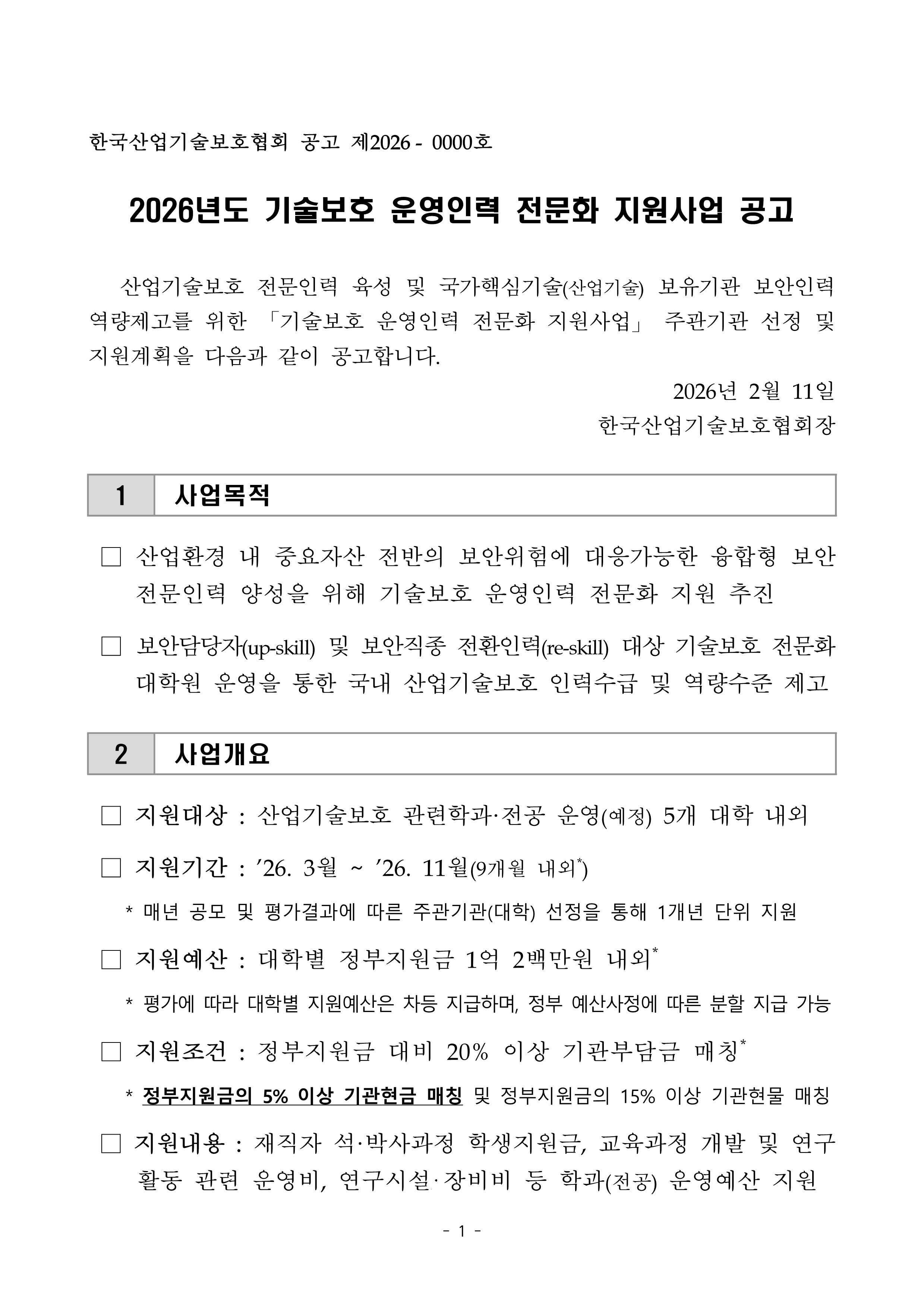 2026년도 기술보호 운영인력 전문화 지원사업 공고